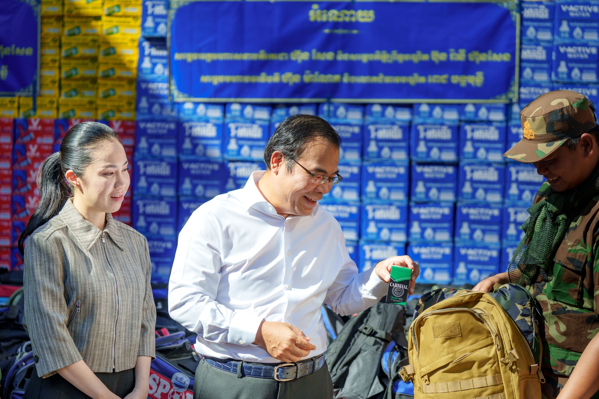 ឯកឧត្តម ថោ ជេដ្ឋា រដ្ឋមន្ត្រីក្រសួងធនធានទឹក និងឧតុនិយម រួមជាមួយឯកឧត្តម លោកជំទាវ លោក លោកស្រី ជាថ្នាក់ដឹកនាំ និងមន្ត្រីរាជការក្រសួង គណៈកម្មាធិការជាតិទន្លេមេគង្គកម្ពុជា និងអាជ្ញាធរទន្លេសាប នាព្រឹកថ្ងៃពុធ ១២រោច ខែមិគសិរ ឆ្នាំម្សាញ់ សប្តស័ក ពុទ្ធសករាជ ២៥៦៩ ត្រូវនឹងថ្ងៃទី១៧ ខែធ្នូ ឆ្នាំ២០២៥ បានអញ្ជើញប្រគល់អំណោយជាគ្រឿងឧបភោគបរិភោគ ស្បៀងអាហារ ថ្នាំពេទ្យ និងសម្ភារៈប្រើប្រាស់មួយចំនួនជូនដល់វីរកងទ័ពជួរមុខកម្ពុជាដែលកំពុងឈរជើងយ៉ាងអង់អាចក្លាហានការពារបូរណភាពទឹកដី និងអធិបតេយ្យជាតិពីការឈ្លានពានរបស់ចោរសៀម នៅទិសប្រាសាទតាក្របី ក្នុងខេត្តឧត្តរមានជ័យ និងតំបន់អានសេះ ក្នុងភូមិសាស្ត្រខេត្តព្រះវិហារ។